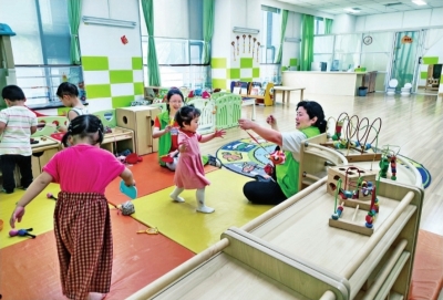 托育中心里孩子们正在玩耍。记者刘克取 摄