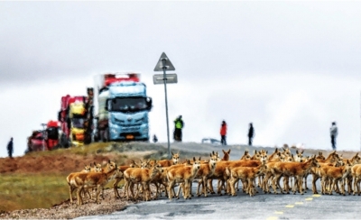 据新华社电 记者从三江源国家公园管理局长江源园区可可西里管理处了解到,当前,可可西里藏羚羊已经进入迁徙高峰期,管理部门提醒往来游客、车辆听从工作人员现场指挥,严禁擅自进入保护区,并注意避让迁徙动物(右图)。藏羚羊是国家一级保护动物,被誉为“高原精灵”。每年5月至7月,来自青海三江源、西藏羌塘和新疆阿尔金山的雌性藏羚羊,会来到可可西里腹地卓乃湖产仔,结束后再携幼仔返回原栖息地。可可西里管理处五道梁保护站副站长尕玛英培说:“今年藏羚羊迁徙从5月7日开始,目前已经进入迁徙高峰期,最多的时候,一天有800多只藏羚羊通过青藏公路。”