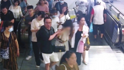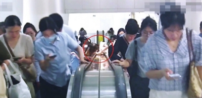 事发6月11日早上8时10分,准备前往单位上班的乘客罗女士乘坐8号线到赵家条站下车,乘坐手扶电梯出站时突然晕倒在电梯扶手上,上身很快倒在电梯外沿挡板上,情况十分危急。正在这时,后方两名乘客急忙冲上前将其扶住,稳稳地架着她直至安全出电梯后交至站厅工作人员胡黎手中。