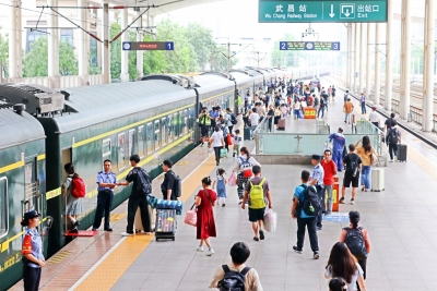 7月1日,旅客在湖北武昌站准备乘车出行。当日,为期62天的2024年全国铁路暑期运输启动。7月1日至8月31日,全国铁路预计发送旅客8.6亿人次,日均发送旅客1387万人次。