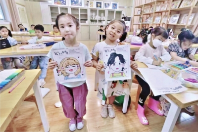 “我画的蛋糕上有粉红色的蝴蝶结和小房子!”7月1日,江汉区红领巾学校阳光校区艺术教室里,一(4)班的黄沐言举着她刚画好的画,兴奋地跟老师、同学分享。这是该校举办的创意绘画营,喜欢画画的黄沐言已经连续5天回到学校参加活动。像这样的暑期夏令营,红领巾学校已经连续免费举办3年,每次为期10余天。今年,该校3个校区共开设了44个不同主题的夏令营,吸引了921名小朋友在活动中发展兴趣爱好,体验美术、科技、劳动、体育等项目的乐趣。