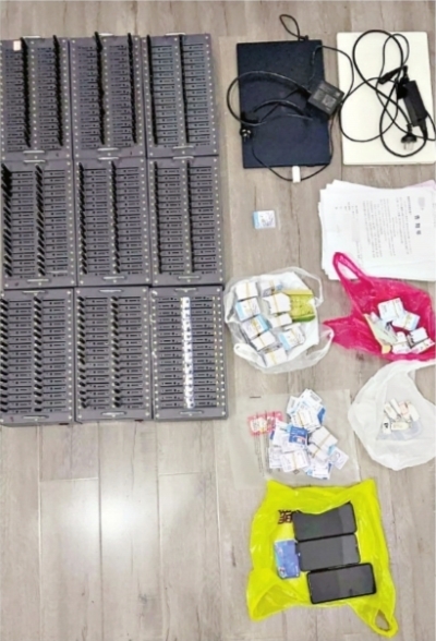 黄陂警方办理电信诈骗案件查获的手机卡及作案工具等。