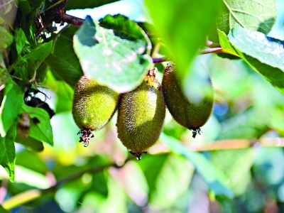 6月24日,在陕西省眉县横渠镇拍摄的经自动喷灌装置喷灌后的猕猴桃。
