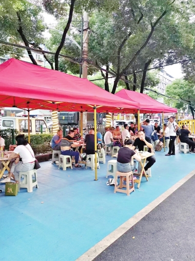 “自己出一点费用,提升了顾客的用餐环境,吸引了更多人流,大家都愿意铺。”美多多家常菜老板沈文辉告诉记者,用上塑料垫后,商户们发现了两个意想不到的好处:一是顾客不再随意乱丢垃圾,二是商户们不会再故意将桌椅摆到垫子外,防止了占道经营。