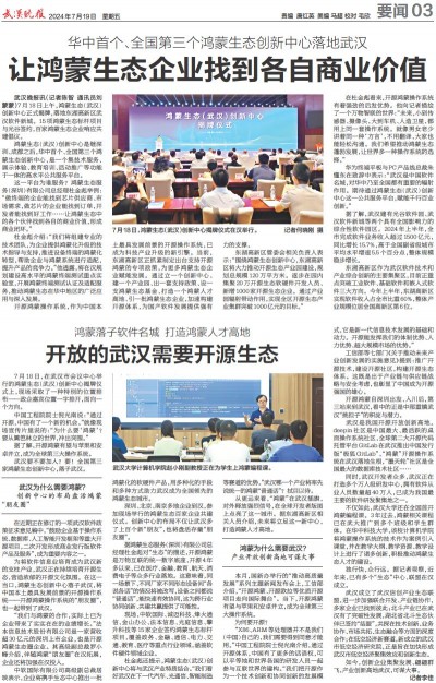 7月18日,鸿蒙生态(武汉)创新中心揭牌仪式在汉举行。