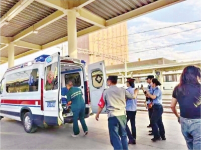 晚8时15分,火车抵达哈密站。120救护车已经停在站台附近,病人很快被送到医院,脱离生命危险。