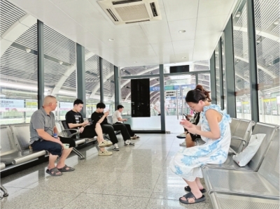 7月31日下午3时,记者来到2号线宋家岗站,露天候车乘客较少,原来大家都坐在空调候车室里。“外面很热,但站台空调候车室里挺凉快的。”正在等车的马女士说,自己经常在这一站坐车,比较熟悉。