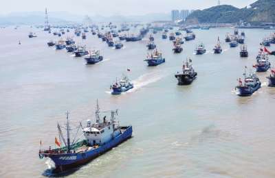 8月1日,数千艘渔船从舟山市普陀区沈家门渔港出发,前往东海海域开启捕捞作业。