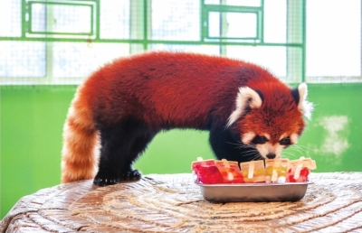 而在武汉极地海洋公园小动物王国里,好动的环尾狐猴一看到鲜果冰棍拼盘便开心地和保育员做起游戏。小熊猫虽有些内向但也忍不住舔了起来。在海豹湾的海豹、极地海湾的海狮已纷纷躺上了冰床。同妈妈一起从孝昌前来旅行的孙雨非说:“炎炎夏日,小动物们的消暑方式好萌哦。”
