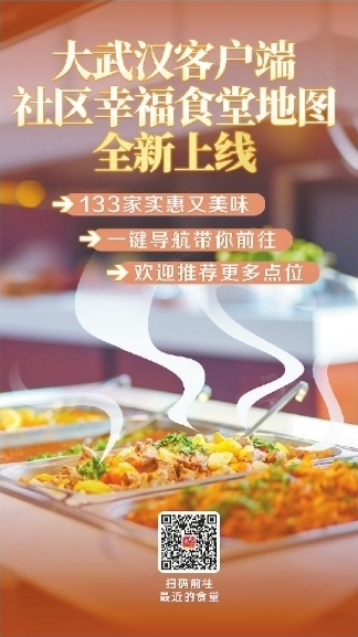 大武汉客户端社区幸福食堂地图全新上线,收录武汉多个社区的133家幸福食堂,地图导航方便市民前往。设置推荐专区,欢迎社区和市民推荐更多幸福食堂点位。