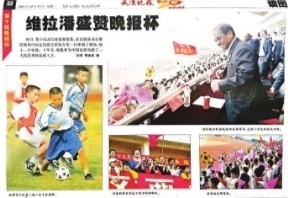 2004年,“晚报杯”迎来历史一刻。闭幕式当天,时任亚足联秘书长维拉潘来到现场并给予了高度评价。“我对‘晚报杯’很熟悉,它有10年历史。亚足联十分希望与‘晚报杯’合作,并希望能把‘晚报杯’赛事纳入亚足联‘学校联赛’的规划中。”