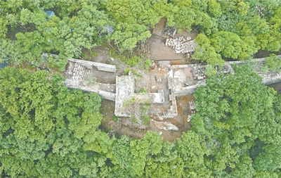这是箭扣长城120号敌台考古现场(7月1日摄,无人机照片)。