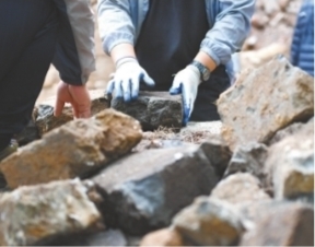 工人在整理从箭扣长城120号敌台考古现场挖出的砖块(7月2日摄)。