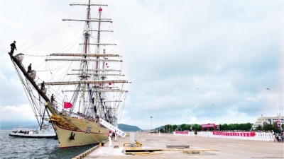 据新华社电 中国海军首艘风帆训练舰“破浪”号20日从大连某军港解缆起航,搭载海军大连舰艇学院的学员和官兵,进行远海实习训练,并将访问越南、印度尼西亚、斯里兰卡、新加坡等国家,技术停靠香港。其间,随舰学员将以帆装操纵和航行值更训练为主,兼顾远洋航海保障技能训练。访问停靠期间,这艘舰将组织舰艇开放、甲板招待会等活动。