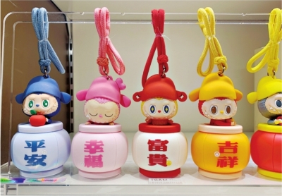 在泡泡玛特样品展示区,“富贵款”盲盒“富”字少一横。