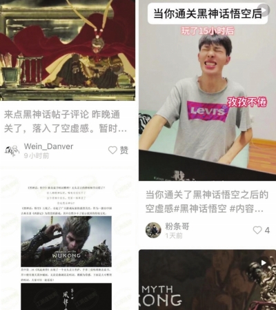 经过几天“奋战”,在8月22日,已经有一批主播、玩家表示完成了游戏通关。狂欢之后,也有网友表示:通关后,心里莫名空虚……这种巨大的落差感从何而来?