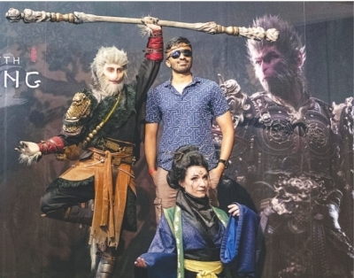 8月22日,人们在2024年科隆国际游戏展《黑神话:悟空》拍照区拍照。