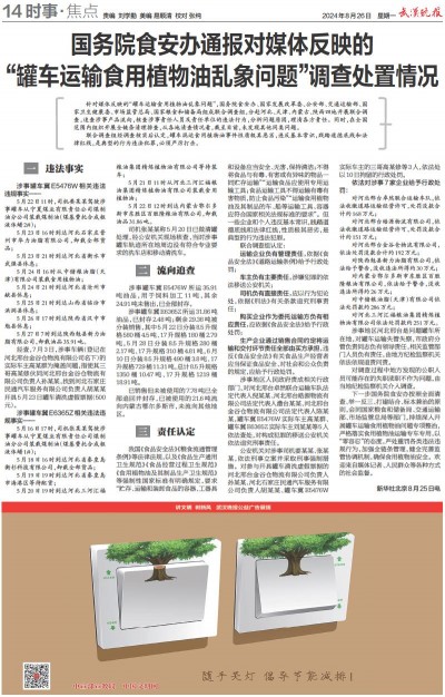 国务院食安办通报对媒体反映的“罐车运输食用植物油乱象问题”调查处置情况