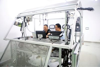 海珀特武汉研发中心试验区,技术人员正在做电子后视镜系统测试。