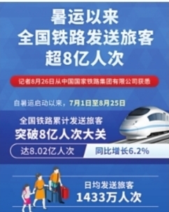 暑运以来全国铁路发送旅客超8亿人次