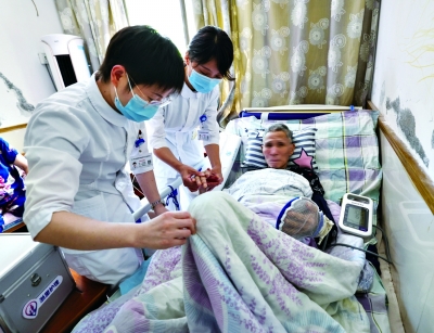 绍兴医护人员上门为“家庭病床”患者进行巡诊、护理等健康服务。