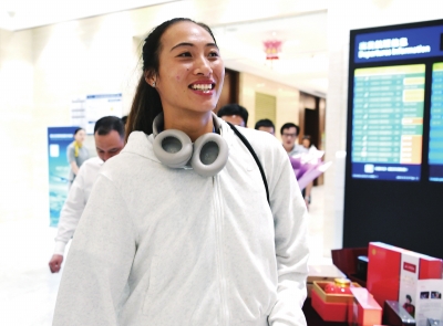 19日晚,郑钦文乘坐的航班降落在武汉天河机场。这是郑钦文在巴黎奥运夺冠后首次回武汉。