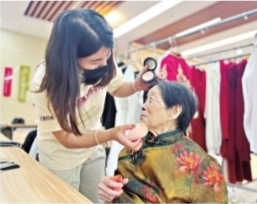 看着镜中的自己第一次涂上口红,马素英奶奶有些羞涩。她告诉记者,今年,她和老伴结婚整整70年,当天一早,网格员专程把他们从家里接到社区活动现场。得知自己已是“白金婚”,老人们笑着说:“还要努力,继续陪伴下去。”如今生活越过越好,马素英与老伴十分感恩,“家庭幸福的秘诀在于彼此尊重、保持沟通”。