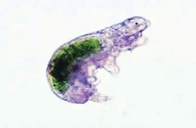 刚饱餐一顿藻类的“穿越”水熊虫。