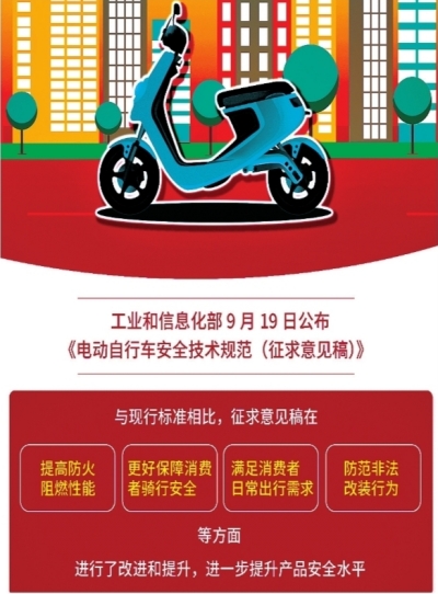 据新华社电 记者从工业和信息化部了解到,昨天,工业和信息化部会同公安部、应急管理部等多部门,对最新修订的《电动自行车安全技术规范》进行公开征求意见。