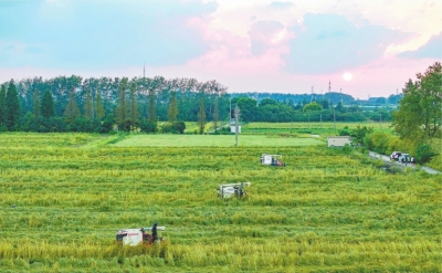 金秋时节,瓜果飘香、田野金黄,农民抢抓晴好天气,收获劳动果实。
