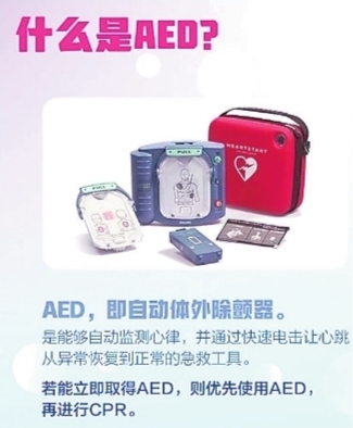 自动体外除颤器(AED)是一种便携式的医疗设备,可以诊断特定的心律失常,并且给予电击除颤,是可被非专业人员使用的用于抢救心脏骤停患者的医疗设备。