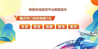 根据在线旅游平台的数据显示,截至9月28日,“国庆节出游”搜索量同比上涨27倍。国庆热门目的地前5位分别是北京、西安、成都、南京、重庆。从机票预售趋势来看,今年国庆假期预售的规模不仅超过去年,也高于“五一”假期。