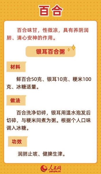 在中医的五行理论中,秋季食疗养生应注重白色食物的摄入。同时,在秋季早晨喝碗粥,还能治秋凉、防秋燥。温州市中医院药剂科副主任中药师林方芬在接受采访时表示,以下6款以白色食物为主料的养生粥,特别适合秋季食用。