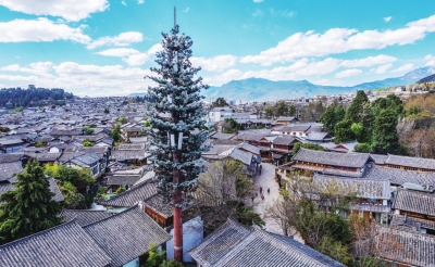 在丽江古城内拍摄的5G基站。(资料照片)