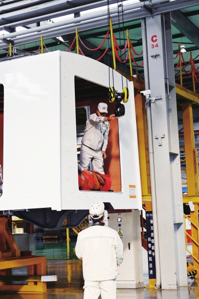 武汉首条地铁环线列车开始装配