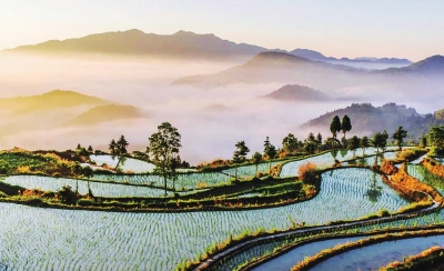 悠悠楠溪江,三百里碧水,永嘉小城被清溪环抱,串联着古村、梯田、瀑布、滩林,构成了一幅幅绝美的风景。