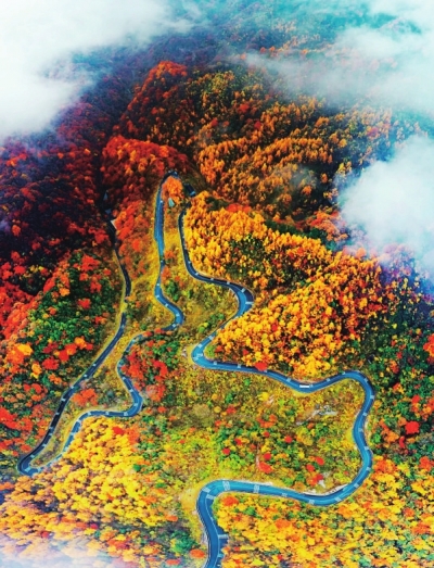 转眼间,北方已飘雪;南方各地正在被色彩包围。山坡上、田地间、道路旁,层林尽染,色彩斑斓,呈现出深浅不一的秋意。