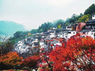 塔川秋色,其独特之处就在于斑斓的秋叶和徽派古民居交相辉映、相得益彰。