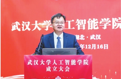 武汉大学人工智能学院成立大会上,校长张平文作学院发展报告。