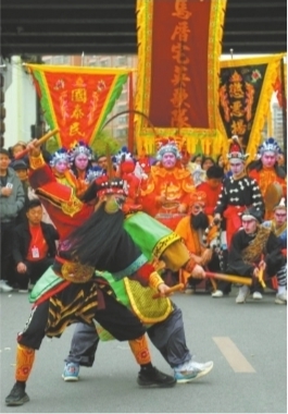 英歌舞,又称“英歌”,于2006年被列入第一批国家级非物质文化遗产名录。这是一种融舞蹈、南拳套路、戏曲演技于一体的民间舞蹈,主要流行于潮汕普宁、潮阳等地区,村民以此庆祝重要节日、入宅开业等。在普宁,每年春节英歌表演必不可少,各村镇和街道分别组织或邀请队伍表演庆祝,合计百场不止。