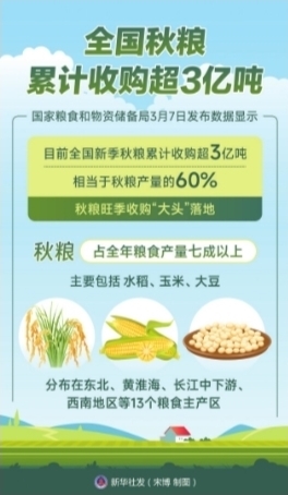 全国秋粮累计收购超3亿吨