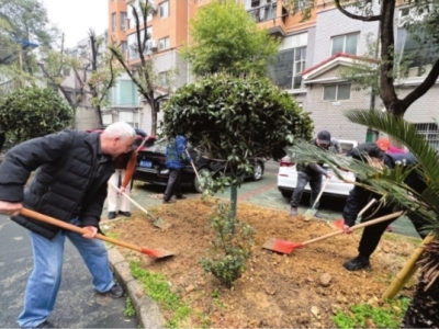 当天,不少居民带来自家园艺工具参与植树,还有居民拿来自家水桶为树苗浇水。一棵棵新栽的树木“站”起,小区门口的空地披上“绿装”,一派生机勃勃的景象。活动结束后,大家纷纷为自己亲手栽种的树苗挂上认养牌,并郑重承诺将悉心照料,确保树苗茁壮成长。