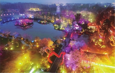 东湖樱花园开启夜赏模式。