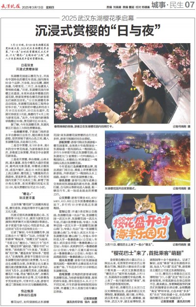 据了解,今年东湖樱花季,东湖风景区打造出三大特色赏樱体验。