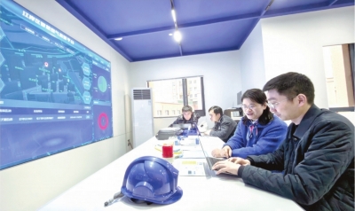 大屏前,工作人员对燃气用户24小时用气安全实时监控管理。