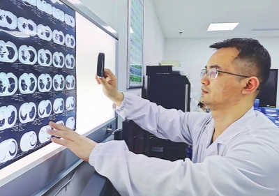 杨澄清正在查看患者的CT影像。