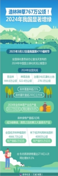 造林种草767万公顷!