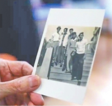 飞行教员周生敬手拿与古巴学员的合影。