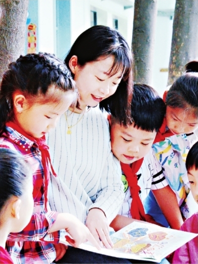 程红与中华路小学的孩子们在一起。