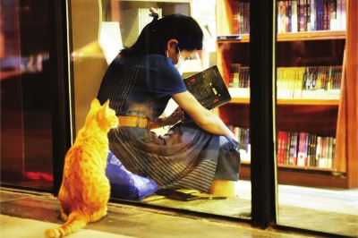 卓尔书店里夜读的读者。